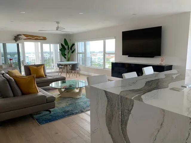 This penthouse gifted the client a perfect backdrop for her art collection; the view of Delray Beach on the Intracoastal!